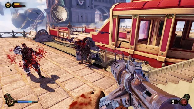 Bioshock Infinite: Когда дело доходит до сражении, игра показывает себя классическим шутером - с врагами, прущими изо всех щелей и принуждением сражаться до тех пор, пока последний враг не будет убит. Классика, но некоторым нравится.