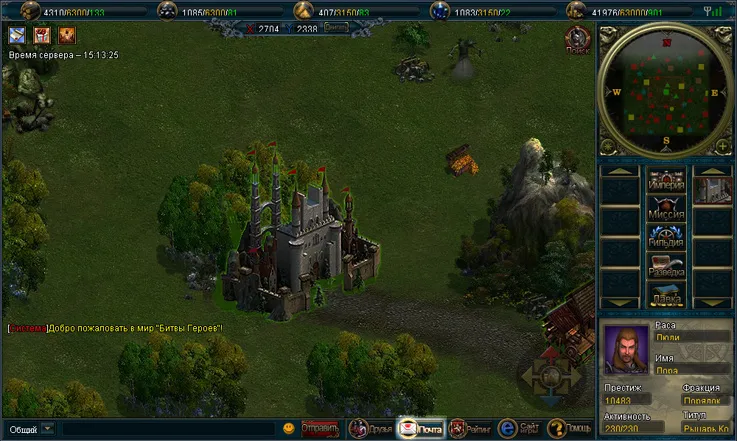 Если по почте приходит письмо, ее кнопка начинает мигать и светиться. Нажав на нее, вы откроете меню почты с закладками «Входящие», «От игроков», «От игры», «Исходящие».