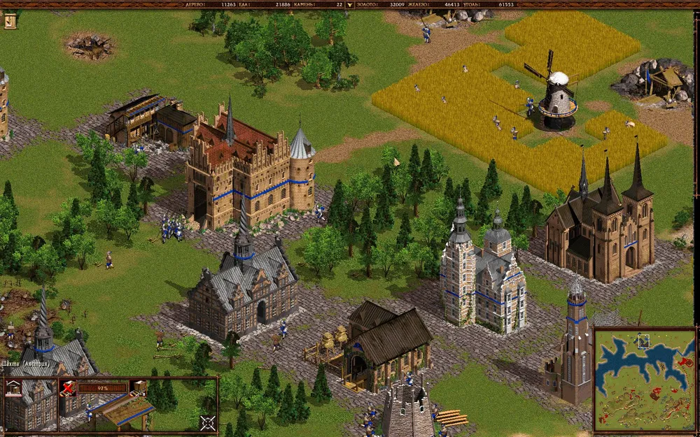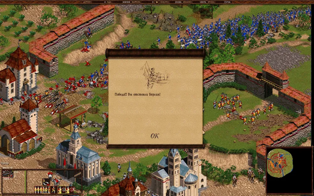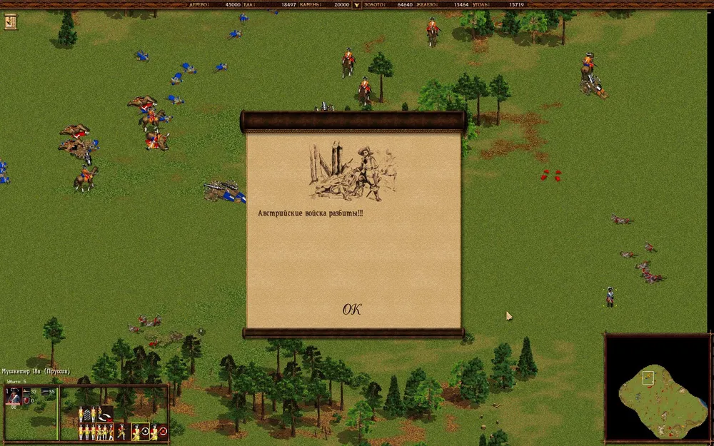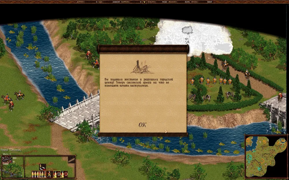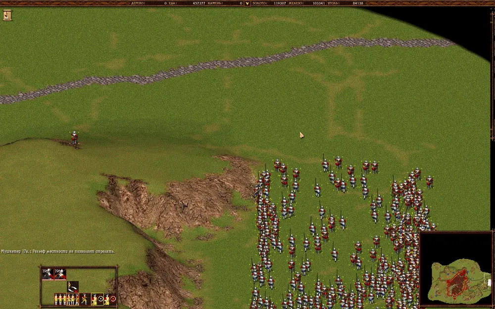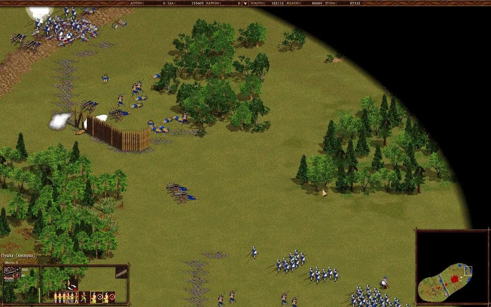 А дальше по накатанной — плодим орды крестьян, развивая экономику, быстренько переходим в 18 век и клепаем войска. Тут есть интересный момент — мортирами противник вас не будет доставать, потому что они будут атаковать.. сундук у тех разбойников, что на мосту.
