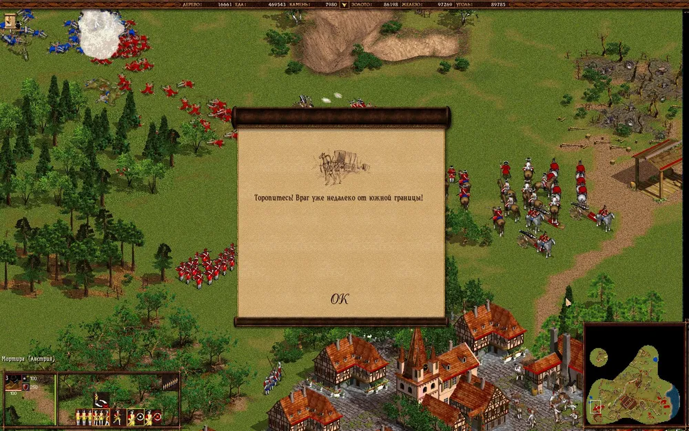 Отстраивайтесь, клепайте войска и уничтожьте два австрийских города. Один совет — не оставляйте без прикрытия подходы к городу и своих крестьян, а то враг просто обожает посылать небольшие отряды наемников.