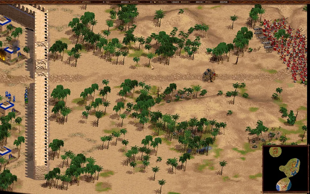 Учитывая ограниченность золотых запасов (это было до того, как я нашел припрятанные купцом деньги) и пару раз неудачно штурмовав пикинерами и лучниками крепость в лоб, я схитрил — построил пару гаубиц (сойдут и пушки) и, разнеся стену в нижней части, уничтожил казармы. После этого осталось лишь две проблемы в виде шебек алжирца (с моря к ним не подобраться, там перешеек), которые, однако, были уничтожены усилиями лучников и построенных под это дело пушек.