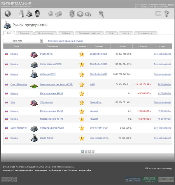 Вот несколько скриншетов из игры. Подробности можно почитать на сайте игры www.bizmania.ru