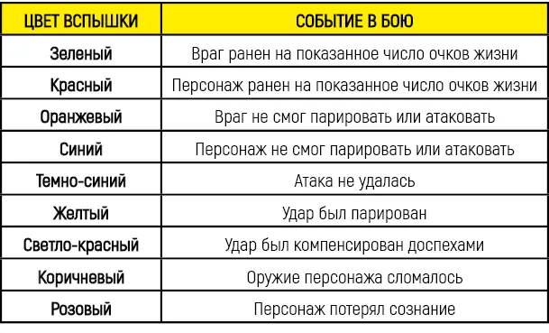 Для выстрела или наведения заклинания между персонажем и целью не должно быть препятствий. Игра сама покажет клетки поля боя, с которых возможен выстрел или наведение заклинания. Если во время следующего хода нужно повторить те же действия (произнести то же самое заклинание, сделать выстрел в ту же цель и т.п.), можно просто воспользоваться пунктом меню Повторить действие. После каждого хода в левом нижнем углу экрана показывается результат - «вспышка» определенного цвета и текстовое пояснение.