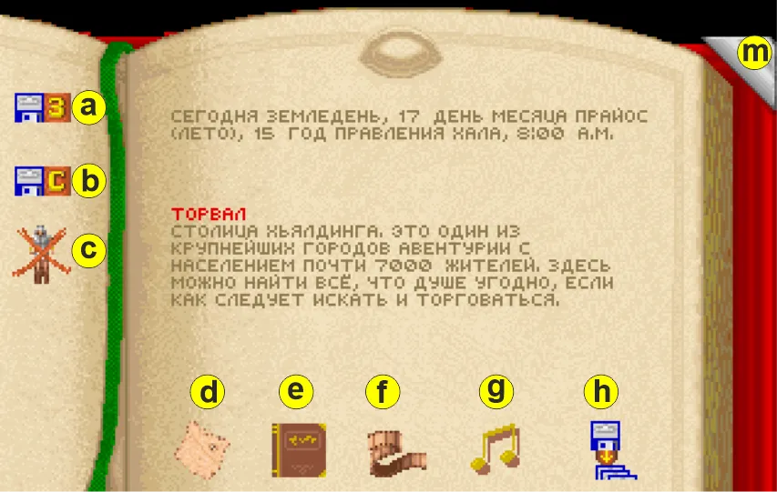 m) Выход. Нажатие на эту кнопку возвращает вас на главный игровой экран.