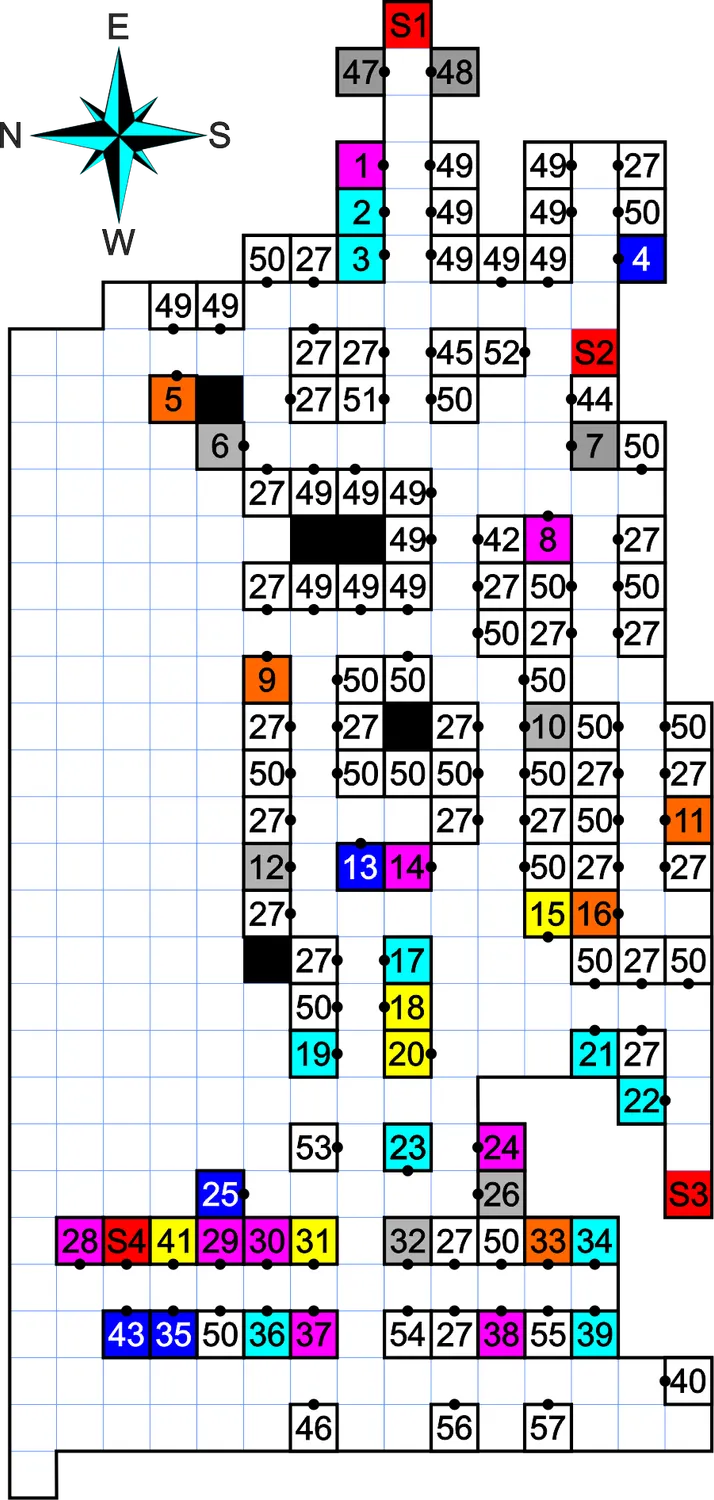 1 -гостиница "Лови-хватай". 2 - таверна "Красная заря". 3 - таверна "Потеря". 4 - лекарь Перайнидан Булькер. 5 - торговец Торбранд Гаральдссон III. 6 - кузнец Гуртаг Гардассон. 7 - кузнец Ольверия Эгильсдоттир. 8 - гостиница "Золотой угорь". 9 - торговец Уппо из Альдерхузена. 10 - кузнец Херзак Кровавый. 11 - торговец Фьельнир Фекстнад. 12 - оружейник Лискольф Мягкий. 13 - лекарь Андра из Бодира. 14 - постоялый двор "Меч и магия". 15 - храм Свафнира. 16 - торговец Брин Каэрбен. 17 - таверна "Пьяный император". 18 - храм Тса. 19 - таверна "Сварливый кабан". 20 - храм Травии. 21 - таверна "Последний герой". 22 - таверна "Драккар". 23 - таверна "Лихой делец". 24 - гостиница "Выпивка Эфферда". 25 - лекарь Норо Мистико. 26 - оружейник Гролло Гумбладссон. 27 - вы стучите, но ничего не происходит. Хотите вломиться в дом? 28 - гостиница "Северный ветер". 29 - гостиница "Гетман Оремо". 30 - постоялый двор "Золоченое яблоко". 31 - храм Фекса. 32 - оружейник Ганс Беорнссон. 33 - торговец Ардо Штерребрандт-Грассберг. 34 - таверна "Крутые ступени". 35 - травница Минна Мюспоркейн. 36 - таверна "Волшебное зеркало".37 - постоялый двор "У Мориссы". 38 - постоялый двор "Четыре ветра". 39 - таверна "Громогласный погреб". 40 - военная академия. 41 - храм Перайна. 42 - арсенал. 43 - академия волшебства. 44 - верфь. 45 - башня из темно-серого базальта. 46 - оттоскин гетмана. 47 - железный двор (ремонт снаряжения). 48 - стадион для иммана (регулярные матчи проводятся только весной и осенью в ярмарочные дни). 49 - дом с палисадником. 50 - случайная встреча с торвальцем. 51 - магистрат. 52 - дорожная станция бейлункских всадников. 53 - банкир Штовер Штерребрандт. 54 - посольство новой империи. 55 - посольство старой империи. 56 - ветряная мельница. 57 - башня Хьялдингард.