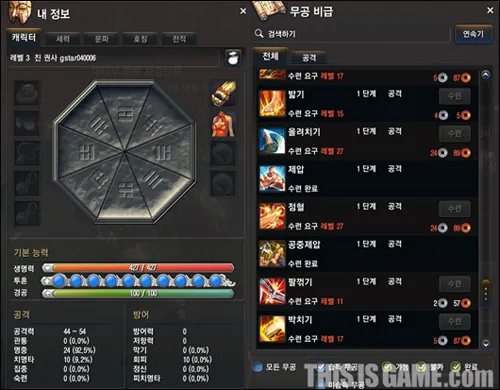 (Символ в окне Статистики, окно продаж книг по боевым искусствам. Видите Бо-Пе слотов в середине окне статистики персонажа.)