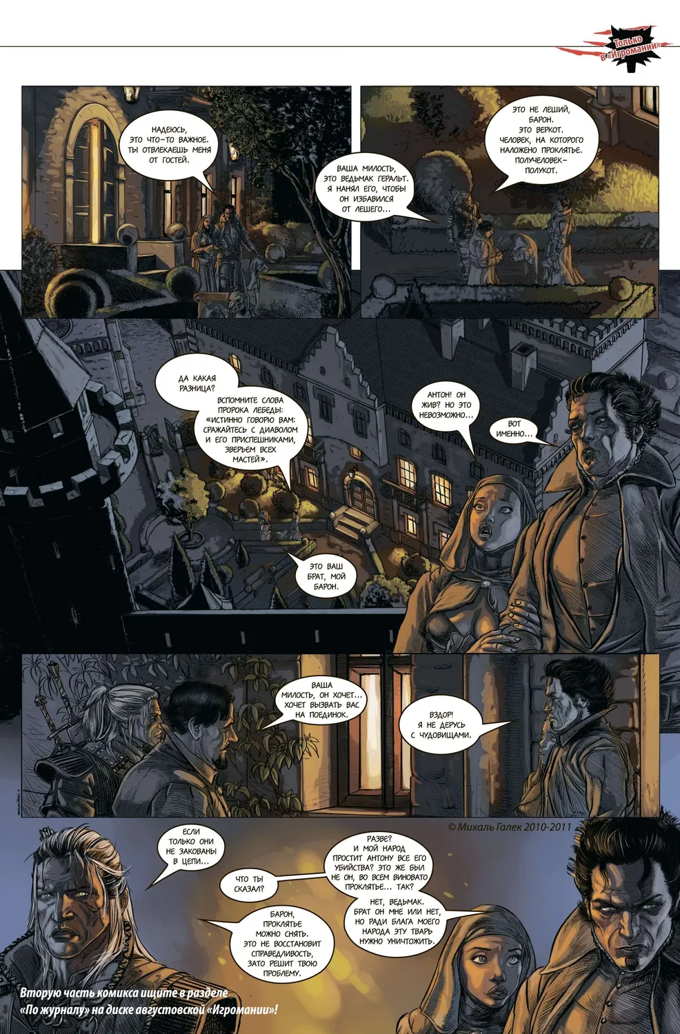 Следуя нынешней моде выпускать к какой - нибудь сильно ожидаемой игре пару - тройку комиксов, CD Projekt Red заказали знаменитому польскому сценаристу, иллюстратору и колористу два выпуска комиксов про приключения Геральта (дворянские дрязги, оборотни, украденные жены - словом, мрачная история). Называется серия "Благо народа". Сайт Igromania.ru любезно перевёл весь выпуск :) Прочитать комикс под спойлером, второй же выпуск ожидается только в августе. Приятного чтения!
