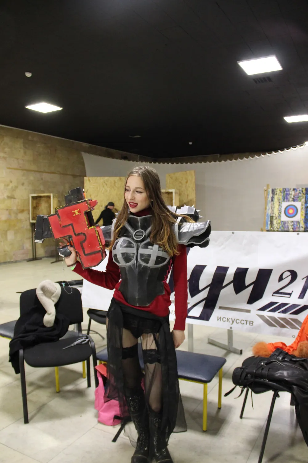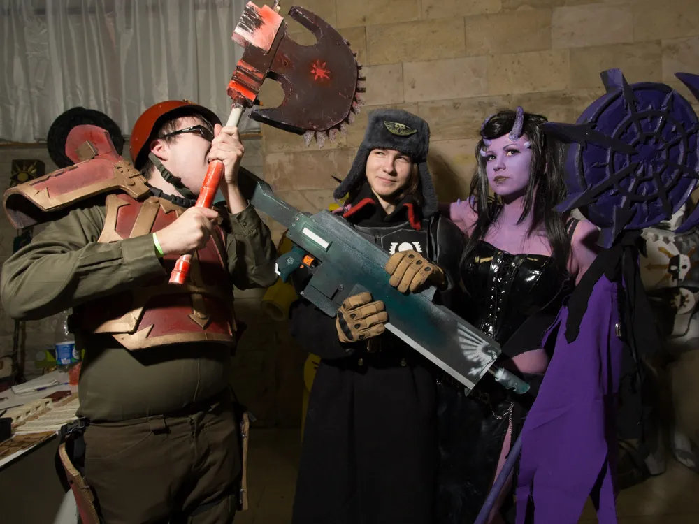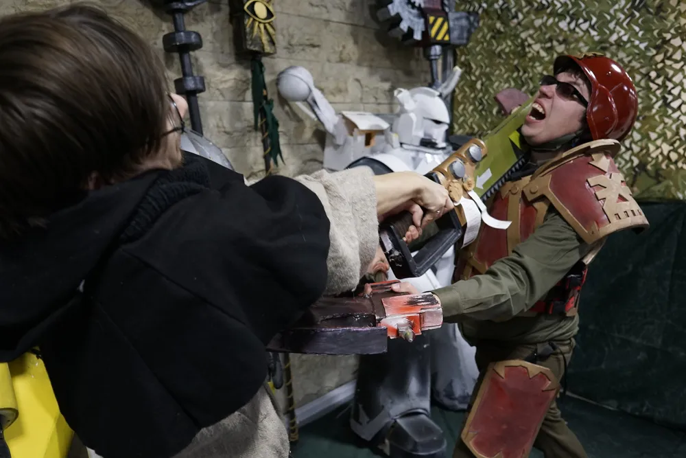 Блинком же, наоборот, был более ламповым мероприятием. Программа нашего стенда значительных изменении не претерпела. В первый день все было традиционно - шли бои между хаоситами и имперцами. Сражение было ожесточенным, но все остались живы и довольны. На второй день, можно было сфотографироваться на фоне декорации или же с космодесантниками(точнее с доспехами) с антуражным оружием(нерфы, ЛАРП и т..п). В качестве интерактива, на второй день, можно было сыграть в вышеупомянутый тир или же коммисарскую рулетку. Но в целом, концепция стенда осталась прежней. Но сила Блинкома была не в этом, а в дружеском общении стендовиков между собой(на мой взгляд, по большей части это был междусобойчик ролевиков) и придумывания развлечении - чего стоит то, как дневять стендовиков зажали бедную казачку со стенда ПРИ по "Новому союзу"(да, вселенная "Нового союза" жива) ради того, чтобы президент стенда и косбенда смог выиграть себе халявный билет. Правда, к сожалению, наши старания не увенчались успехом.