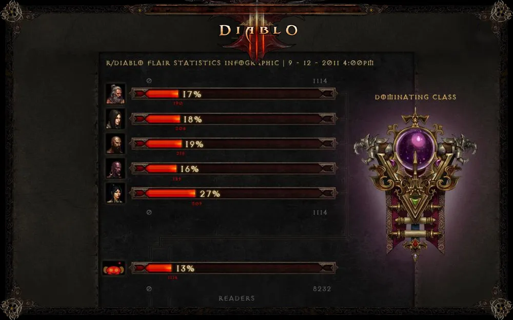 В какой-то степени это предсказуемо, что на первом месте будет Чародейка (сорку из Diablo II и ее наследие никто не отменял), а в тройку популярности попадут герои, анонсированные последними. Однако, как видите, кучность голосов там плотная, и расклад легко могут изменить новые игроки, присоединившиеся к тестированию.