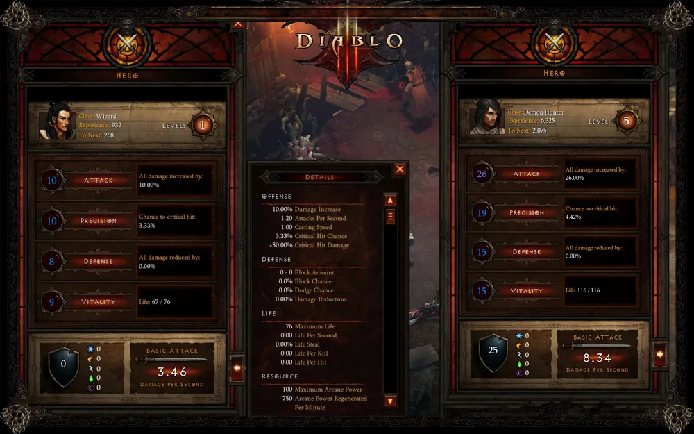 Bashiok: "В данный момент нас интересуют ваши предложения по поводу очков характеристик и информации, которую вы хотели бы видеть в окне статистики персонажа. Первоначальный вариант вряд ли слишком сильно изменится, однако мы бы хотели предоставить вам столько информации об атаке, защите и так далее, сколько вы пожелаете увидеть, наведя курсор на соответствующий параметр. Так что если вы хотите открыть тему и устроить там что-то типа опроса, нам было бы интересно узнать, какие еще данные о герое вы хотите там увидеть".