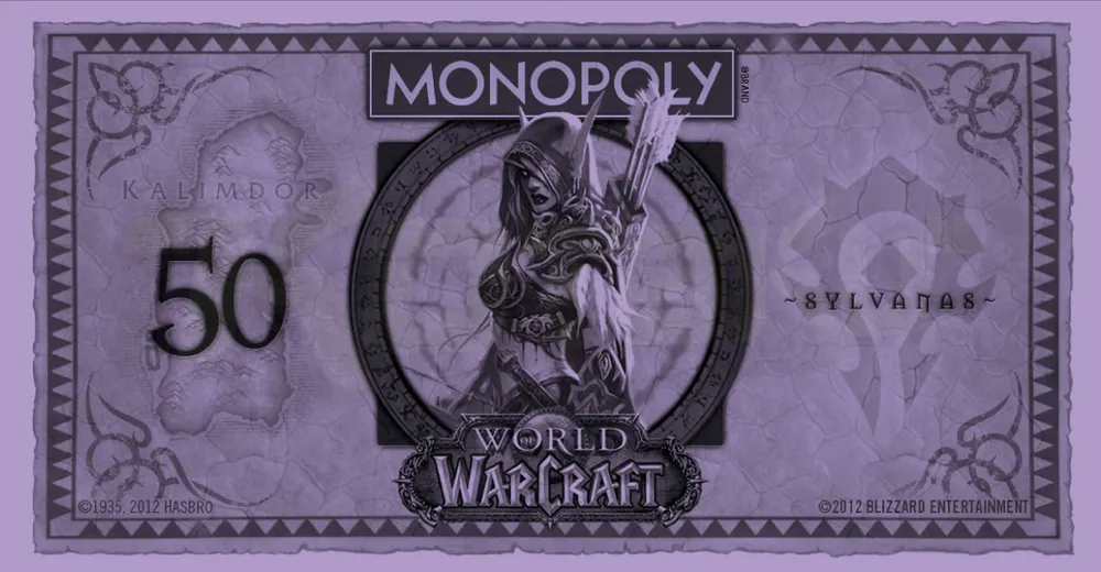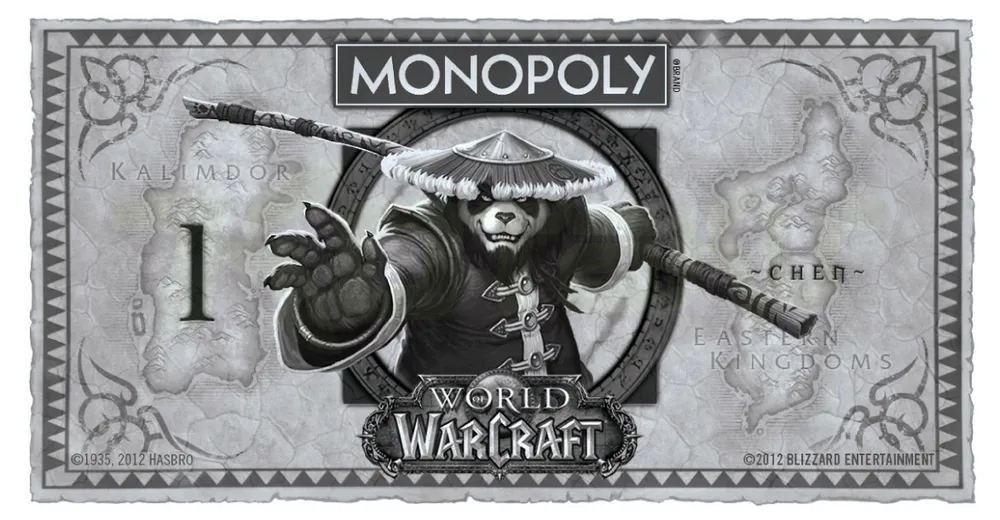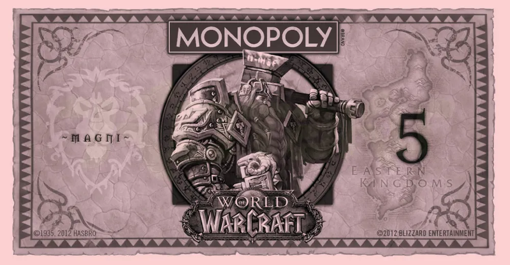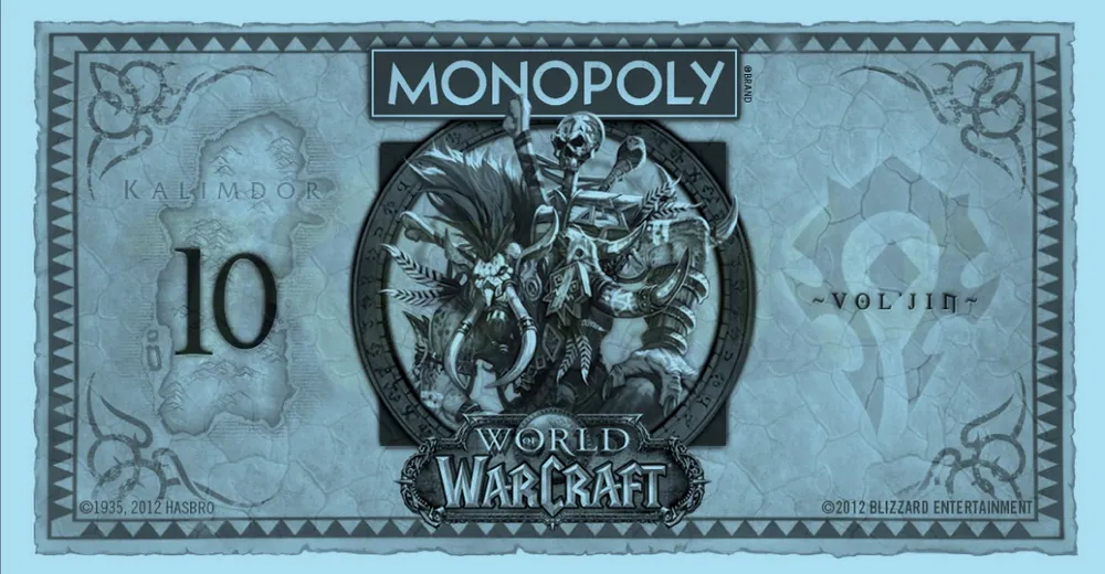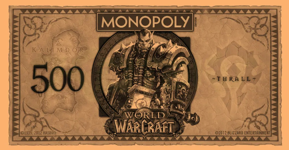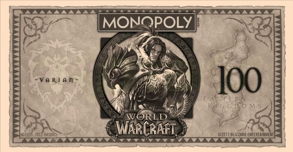 Blizzard (при возможном участии USAopoly) использовала блог Kotaku для эксклюзивного показа дизайна купюр из настольной игры Monopoly: World of Warcraft, которая выйдет в мае 2012 года. Дизайн сравнительно прост, но приятен глазу (во многом из-за того, что портреты лидеров на дензнаках выстрижены из заставок World of Warcraft и всем давно привычны; ну да ладно). Однако распределение лидеров Альянса и Орды по купюрам словно бы имеет своей целью разжигание конфликтов.