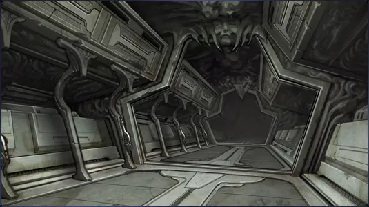 Работая над этим концептом, я старался помнить о том, что этот храм в одинаковой мере является и древней тюрьмой для мертвецов, и могилой или некрополем. Это темное, зловещее место, внушающее дурные предчувствия, поэтому я начал с нескольких простых форм и цветов, которые бы подходили под эту идею. Я использовал крупные, грубые формы, чтобы подчеркнуть могущество и прочность.