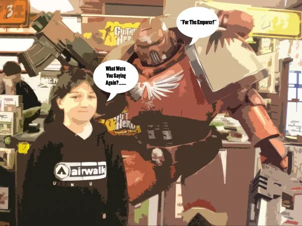 Далее фото-ряд, без комментариев. Вот так издевались посетители магазина и фанаты над непобедимым Space Marine.