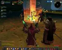 (Красные трещины на земле указывают зону действия заклинания (World of Warcraft).)