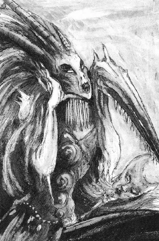 Клубок ужасов, дитя соблазнительных ночных кошмаров, слишком опасных, даже чтобы мечтать о них. Кто может описать их? Пережившие такое, вспоминают немногое, их мозг отказывается вызывать из глубин памяти увиденное - лишь длинные конечности, языки, лица Злодеев искаженные экстазом боли.