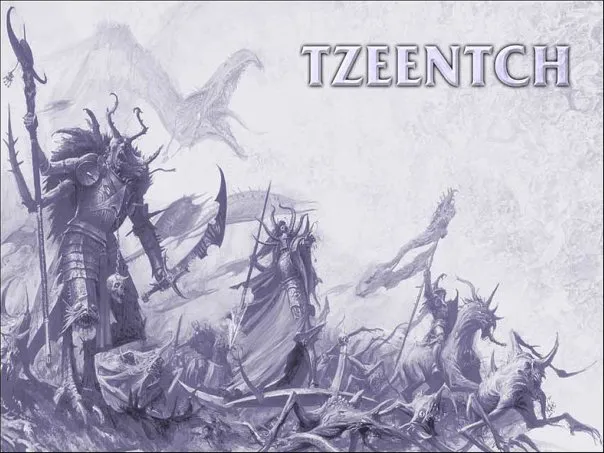 Тзинч - темное божество Хаоса, бог Перемен. Его извращенные мотивы обычно непостижимы смертным, в его арсенале много орудий, но война - мощнейший инструмент перемен, и потому последователи Тзинча зачастую стоят в авангарде войск Хаоса. Тзинч также покровительствует колдовству, и многие из самых могущественных псайкеров и мистиков жертвовали себя ему. Объединенные с душе-субстанцией демонов, военные машины Тзинча представляют собой загадочные творения, что летают над полем боя по невидимым течениям варпа. Энергия порождает энергию, и само только присутствие демонических машин Тзинча усиливает власть Хаоса в материальной вселенной.