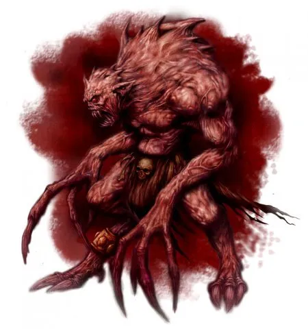 Кровавые Звери и все, подобные им, своим существованием обязаны только Темным Силам. Являясь демонами, они абсолютно безразличны к поддержанию какой-то определенной формы своего тела: некоторые могут выглядеть как шевелящаяся куча пульсирующей плоти, ртов, и щупалец, в то время как иные могут быть почти неотличимы от обычных людей, если бы не мутные белые глаза.
