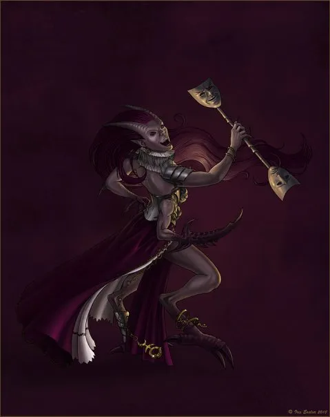 Во время нескончаемых ссор и войн Великой Игры, всплыла правда, что Тзинч обманом и уловками вынудил Слаанэша схлестнуться с Кхорном. Изменяющий Пути заманил Темного Князя целью, которой он не мог достичь, что и привело к позорному поражению Слаанэша. Видя печаль своего хозяина, Маска решила поднять ему настроение самым забавным из известных ей танцев. Где некогда ее прыжки и пируэты приносили смех и веселье, ныне наполненное горечью сердце Слаанэша узрело лишь издевку и насмешку. Каждая из идеально выверенных комбинаций движений была рассчитана с целью еще более уязвить гордость Темного Князя. Слаанэш заклеймил Маску предательницей и прогнал ее прочь. Он также проклял бывшую прислужницу, сказав, что если она желает танцевать, то пусть танцует вечно.