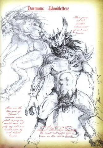 Из всех напастей Кровавого Бога эти существа – пожалуй самые порочные, бесчеловечные (как ни смешно бы это звучало по отношению к демонам), а также загадочные. Ни один из ныне живущих или наших предков, посвятивших себя изучению демонов, так и не смог разгадать их истинную природу: демоны они или все-таки смертные. Многие маги-исследователи считают их смертными существами, так как в процессе экспериментов над ними так и не обнаруживали у них связи с иной реальностью, которая присуща всем известным формам одержимости демонами. Некоторые, приняли на вооружение точку зрения, что они и вовсе не имеют отношения ни к одному известному подвиду демонических существ, а напротив, представляют собой искореженную гнилью Хаоса доселе неизвестную расу смертных существ. Третьи, такой точки зрения придерживаются в основном те, кто имел несчастье встретить этих тварей в бою или охотиться на них, полагают, что настолько сильные и мгновенные изменения их плоти, явно имеют магический характер, разве может хоть одно известное смертное создание пережить такое?