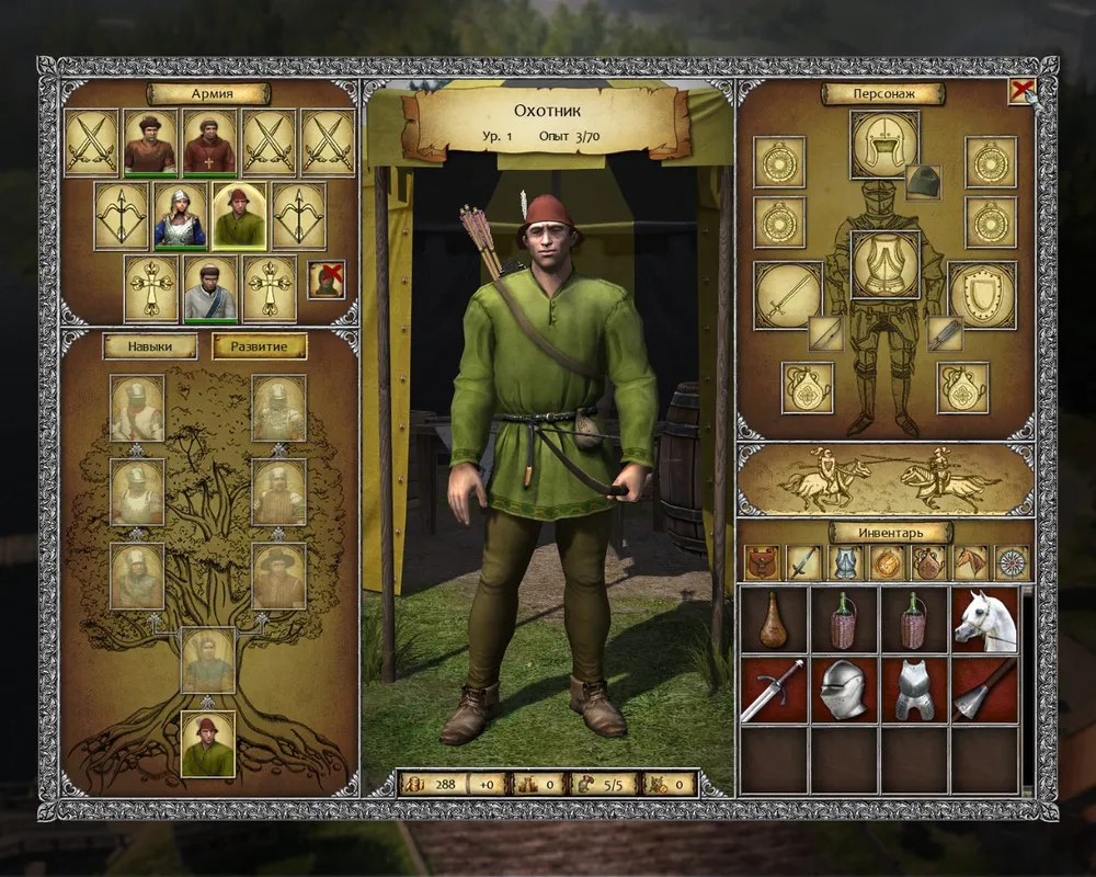 Что касается экипировки, то тут в общем всё стандартно — доспехи, шлем, оружие, амулеты и зелья. Хотя есть один нюанс, хорошо знакомый поклонникам жанра RPG — снаряжение зависит от класса. Если рыцарь может примерить на себя самые тяжёлые доспехи и взять в руки хоть меч, хоть топор, хоть алебарду, то простой крестьянин может совладать лишь с рогатиной да дубиной, а защитой ему будет только льняная рубаха.