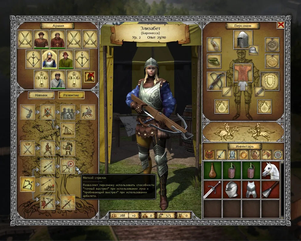 Две ветки развития для стрелка - лучник и арбалетчик. У каждой свои плюсы и минусы.