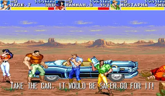 Если вы дочитали до конца, то думаю сами уже поняли, что игра получилась красочная и динамичная. Всё проходится на одном дыхании, игра нигде не провисает, волны врагов следуют друг за другом, безостановочный экшен. У игры есть только один, очень большой, минус - Capcom так и не портировали её ни на одну современную систему. По бродящим в интернете слухам, это каким-то образом связано с финансовыми разногласиями между Capcom и General Motors, производителями Кадиллаков. Хорошо хоть теперь, когда эмулируется практически всё что выпускалось, игру можно достать и пройти. Поверьте мне, если вы любите beat'em up'ы, то эта игра уж точно стоит того, чтобы потратить на неё своё время. Особенно если найдёте способ поиграть втроём.