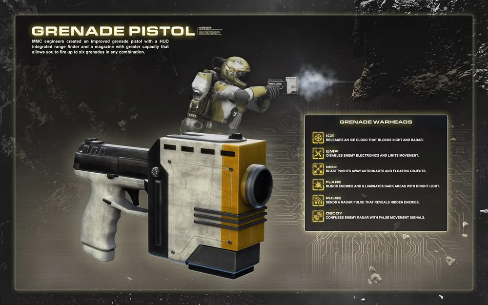 В космосе нет места большим и неудобным пушкам, какими бы они крутыми не были. Благодаря этой малышке, вы сможете сжечь, заморозить, наэлектризовать, одурачить, обнаружить, разорвать ваших коллег гранатами, что вылетают из дула гранатолета