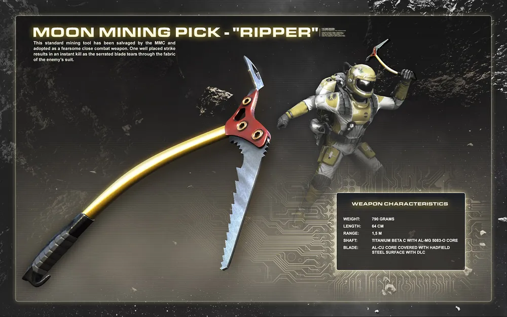 Второе поколение штурмовых винтовок, адаптированных специально для ведения боя в вакууме. RK-42 - оружие на все случаи жизни, которое подходит под любые боевые условия. Где бы вы не находились, в кратере метеорита, на острие антенны, или за спиной противника, вы всегда будете чувствовать себя уверенно, как трумужыг