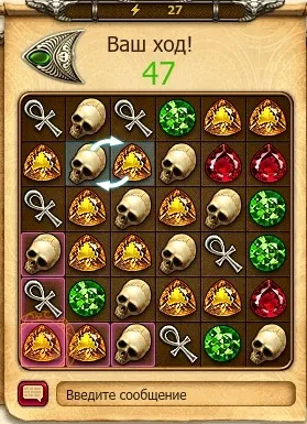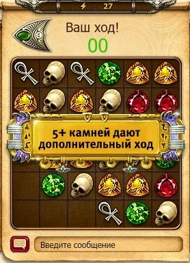 Одно из важнейших условий турнирного боя - собирание фигуры «5 камней в ряд». Это даёт дополнительный ход. Явная пятерка легко собирается крестом или вручную.