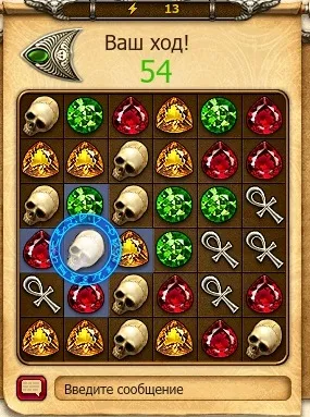Первый ход: у соперников по 0 манны, и возможность использования элика тоже закрыта. Первый ход в турнире важен, но не далеко окончательно - приговорный. Сразу же необходимо набирать побольше манны, собирать красные камни, и по возможности, черепа.