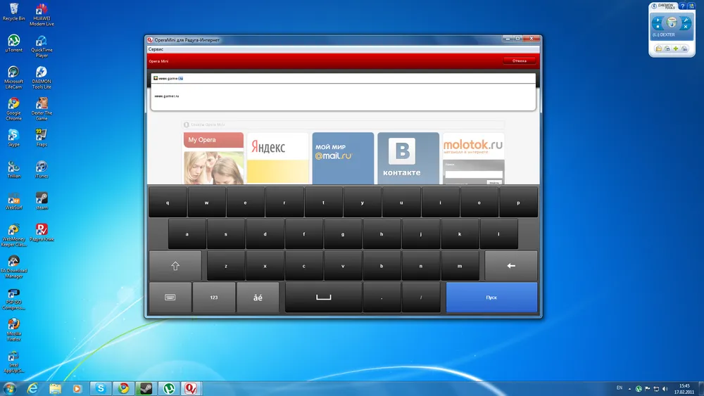 - Скачать адаптированную для настольных компьютеров версию браузера Opera Mini с сайта www.radugainternet.ru