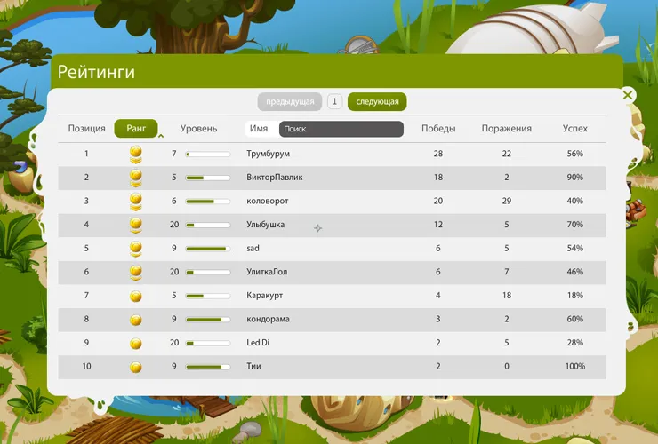 А также, «Банк», «Мой дом» (профиль игрока), и, конечно же, посмотреть «Рейтинги» (своеобразная «доска почета» Лорикона).