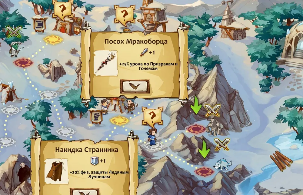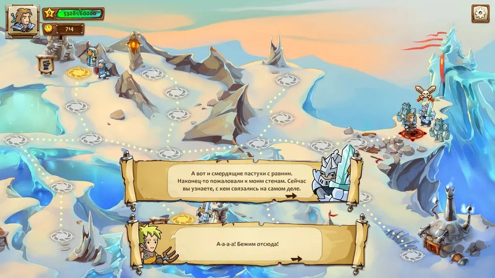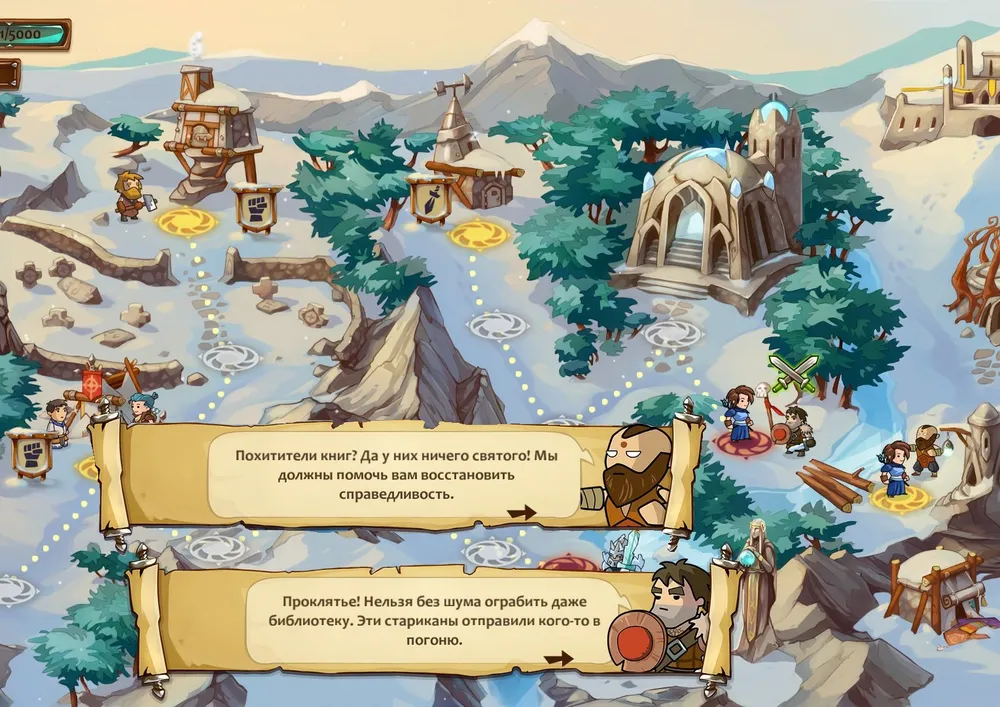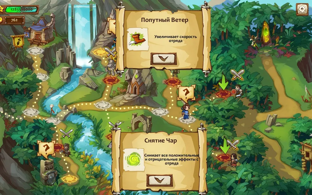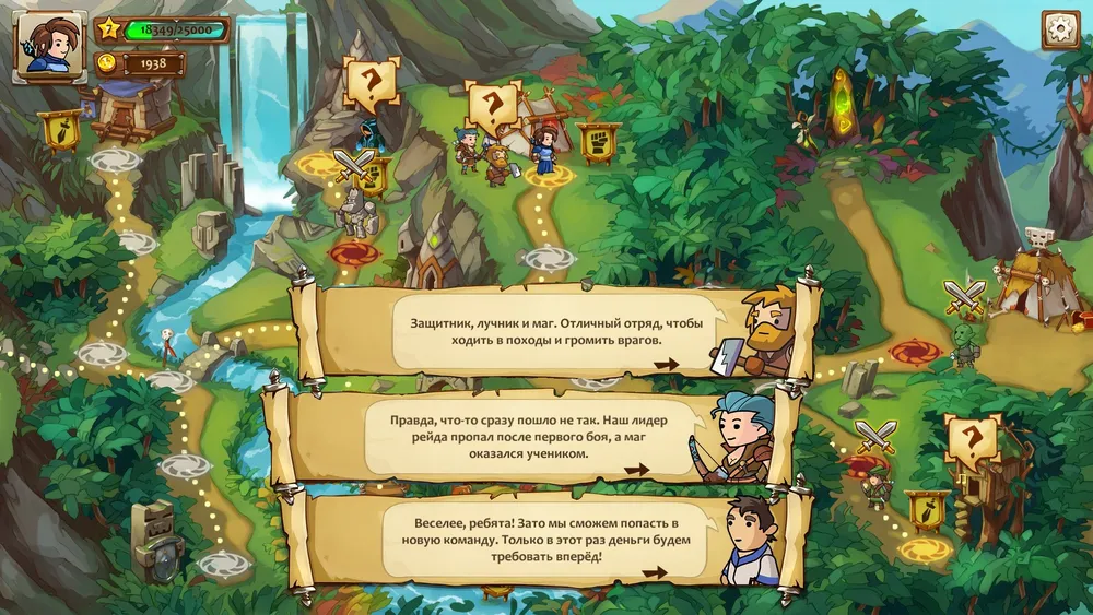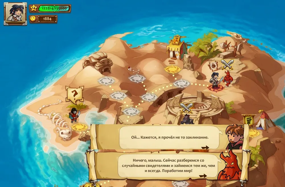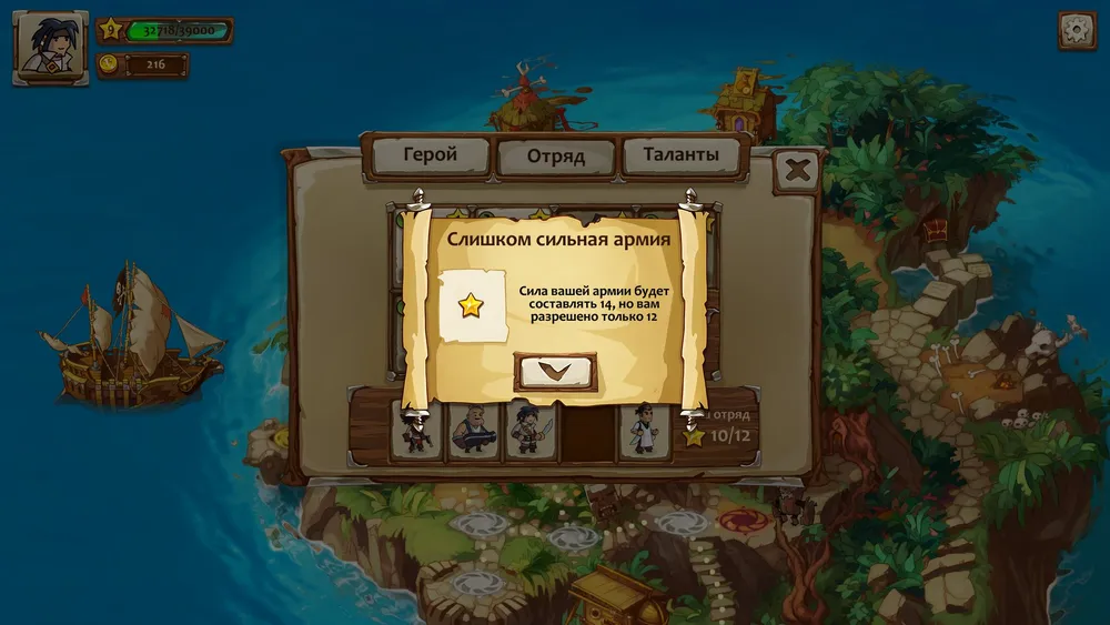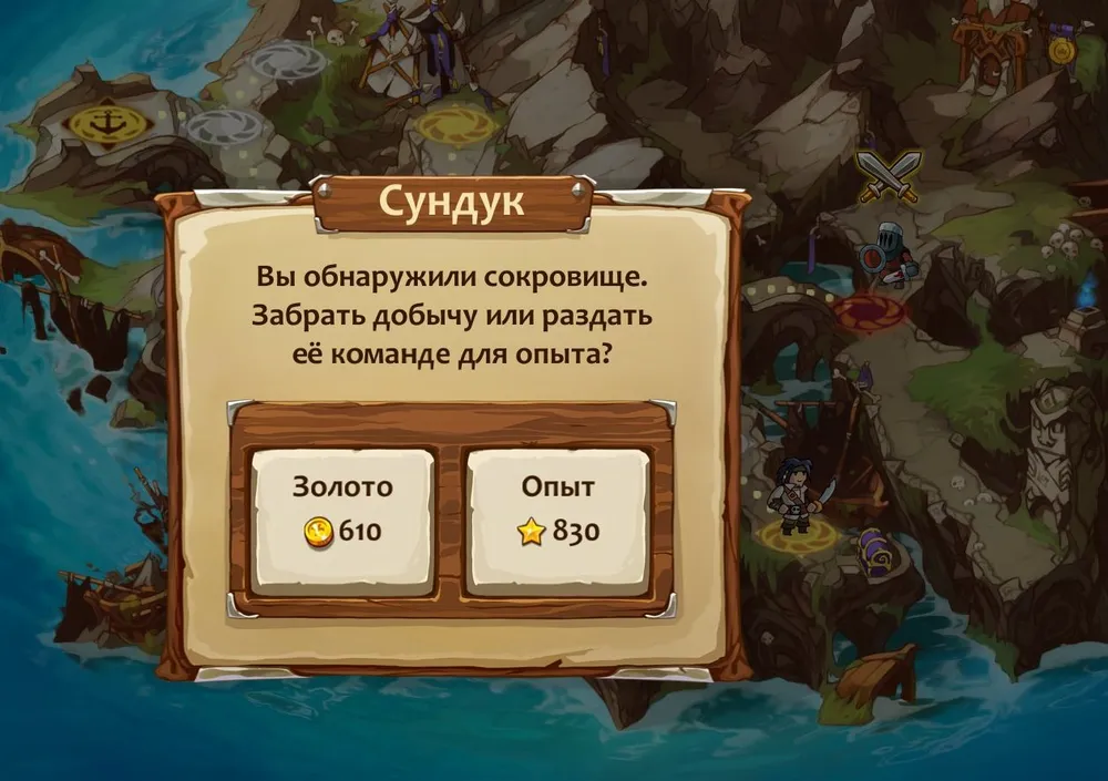 На первом и втором островах попадаются сундуки, предоставляющие выбор: опыт или золото? Непременно золото, чтобы пополнять ряды войска, а опыт придёт сам.