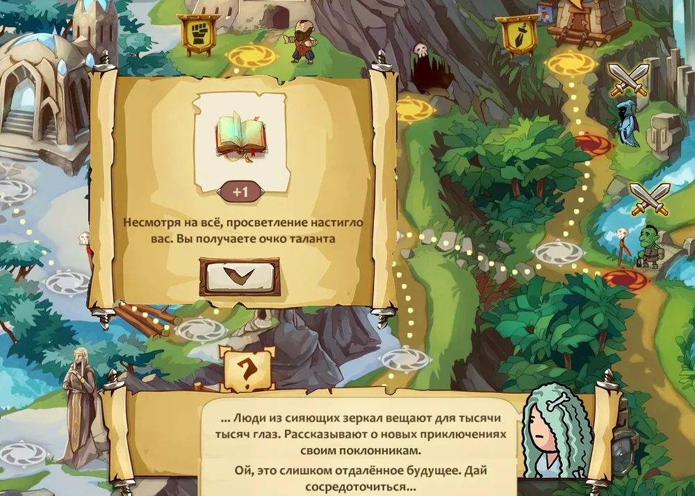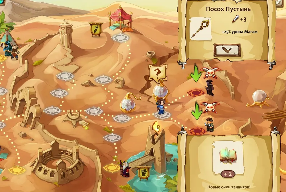 Помимо этого, у магички появляются таланты: при повышении уровня героиня получает два очка, с помощью которых может развивать ту или иную ветку талантов.