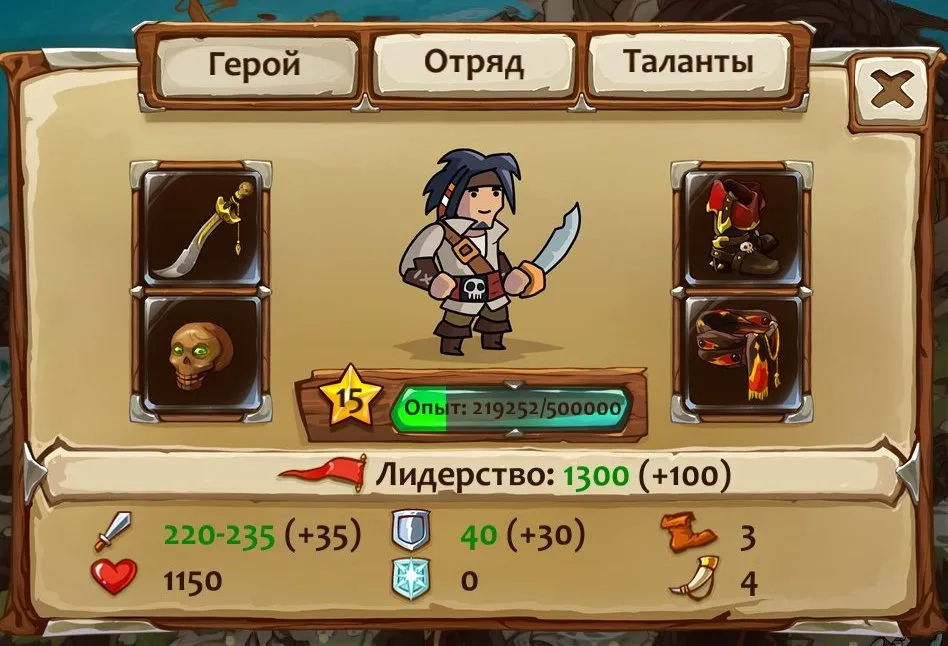 В этой ветке остался едва ли не самый важный талант: «Полководец», дающий две звезды к силе отряда. Всё верно: в мире гораздо больше добрых людей, не очень-то желающих заниматься пиратством. Поэтому сила пиратского войска – всего 12 звёзд, против 15 у воина и волшебницы. То есть, если не взять этот талант, либо придётся уменьшать количество отрядов, либо отряды из бойцов четвёртого уровня останутся «за бортом».