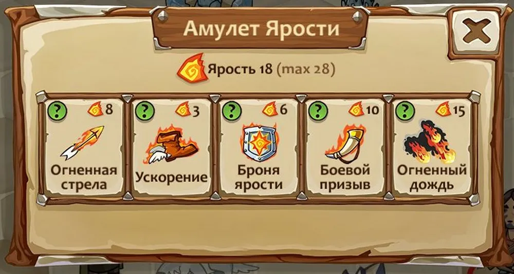 Далее: применение заклинаний становится возможным лишь после победы над первым «Боссом» и зависит не от количества какой - то там маны, а от уровня ярости воинов. Который возрастает в том случае, если воины получают повреждения от врага. Правда, начальный уровень ярости зависит от силы духа героя и никогда не понижается. Так что существует реальный шанс начинать сражение с применения «Огненной стрелы». Умения ярости можно применять один раз за ход, их всего пять.
