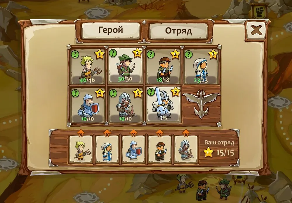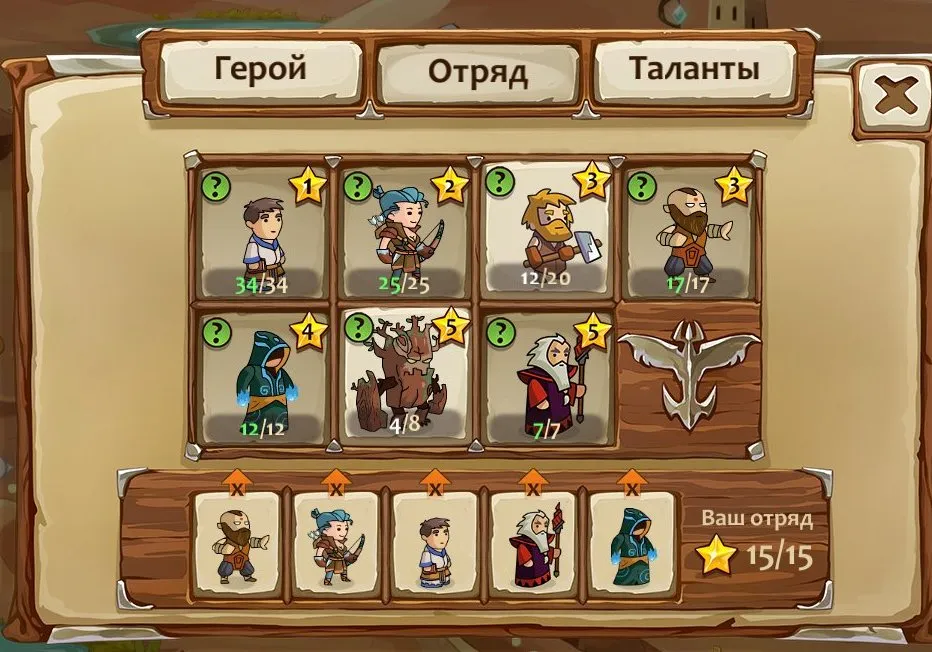 Следующее отличие: армия имеет ограничение по силе. То есть, вы не можете набрать в своё войско, состоящее из пяти отрядов, лишь бойцов пятого и четвёртого уровня – сумма уровней должна быть не выше пятнадцати. Приходится комбинировать и решать, что лучше: создать войско из трёх, четырёх или пяти отрядов?