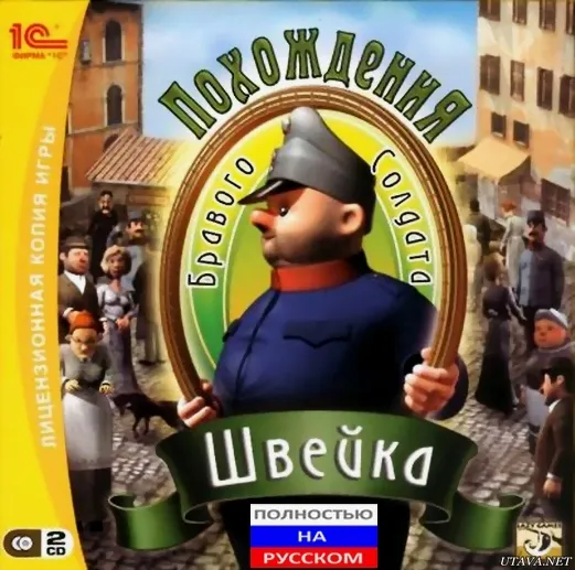 Отметился Швейк и в компьютерных играх, снова оказались причастны наши авторы - студия Lazy Games, собственных разработок у неё немного, в основном они локализаторы, среди их работ - стадия озвучивания Ведьмака, космосимулятор X3: Земной конфликт и некоторые его дополнения, и другие проекты. Квест по книге получился без заморочек, по местам похождений из книги. Плюсом можно считать симпатичный визуальный стиль в духе тех самых иллюстраций. Думаю был взят прицел на широкую аудиторию благодаря заметному названию игры. Да и для 2007 года требования были очень доступными: 512 RAM, всего 64 Мб видеопамяти, да 200 Мб пространства на диске.