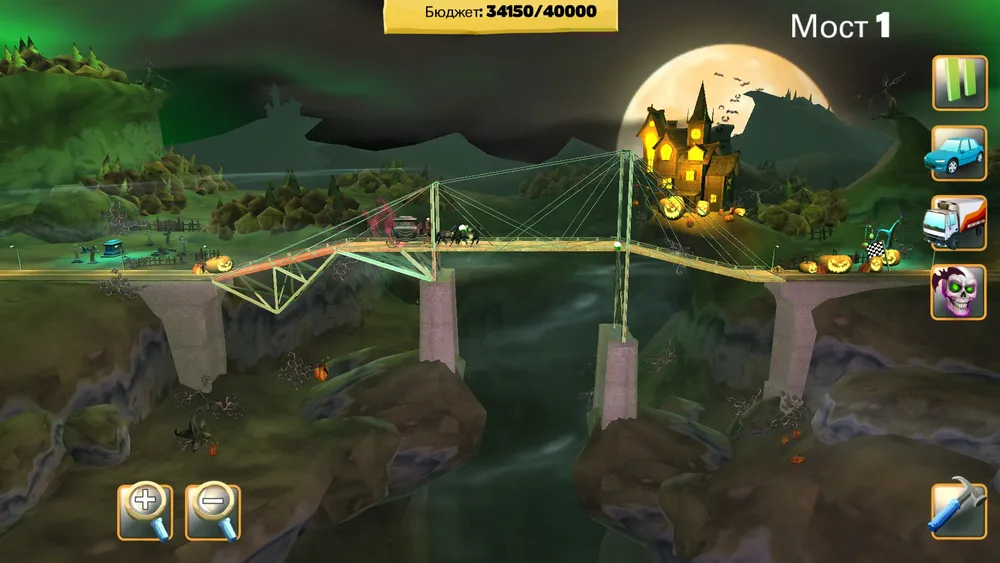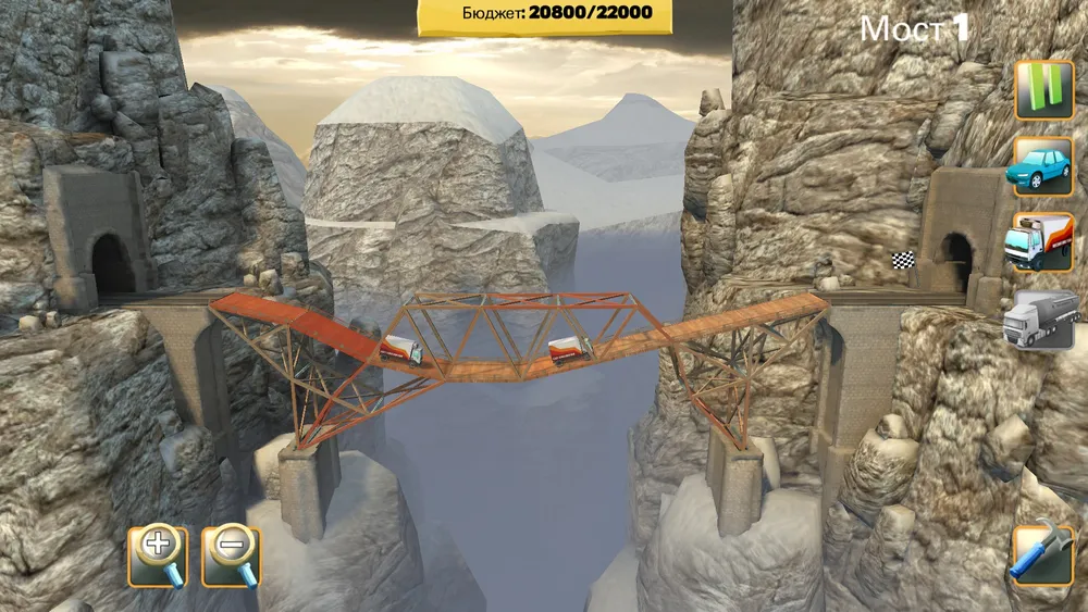 Легче всего пустить по мосту легковые автомобили. После прохождения всех уровней и создания самых прочных мостов, выдерживающих движение грузовиков, откроется новое испытание — грузовик с цистерной. И хоть двигаться будет только один такой грузовик, он сам гораздо тяжелее предыдущего испытания на пару грузовиков.