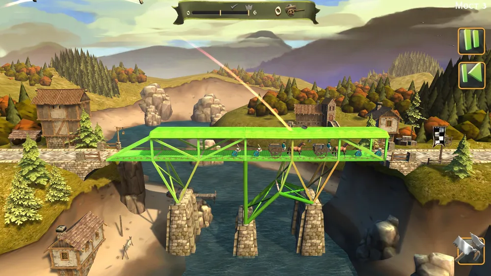 Хороший мост в Bridge Constructor должен прежде всего держаться сам — обладать устойчивостью и покоиться на надлежащих опорах. После этого уже наступает главное испытание — способность выдержать продвижение по нему транспорта.