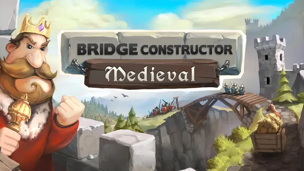 Так в отдельном проекте Bridge Constructor Medieval из названия уже следует — был выбран антураж средних веков. Игра снова очень напоминает детскую: здесь есть некое подобие сюжета, который подаётся при помощи комиксовых вставок и рассказывает о некоем королевстве, на которое напали злобные враги (названные почему-то уруками, хотя вид их злодея вполне человеческий и типичный разбойник). Игрока наделяют ролью королевского архитектора, который при помощи строительства новых мостов должен помочь королевству. Всё почти как в Bridge Constructor про современность, только без автомобилей. Материалы в редакторе заменили стальные на дубовые, ванты на канаты, железобетон на каменные колонны.