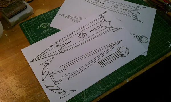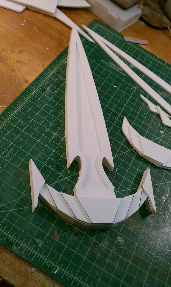 Слоя ПВХ были склеены эпоксидной смолой. Края лезвия отшлифовал с помощью барабанно шлифовальной машины Dremel.