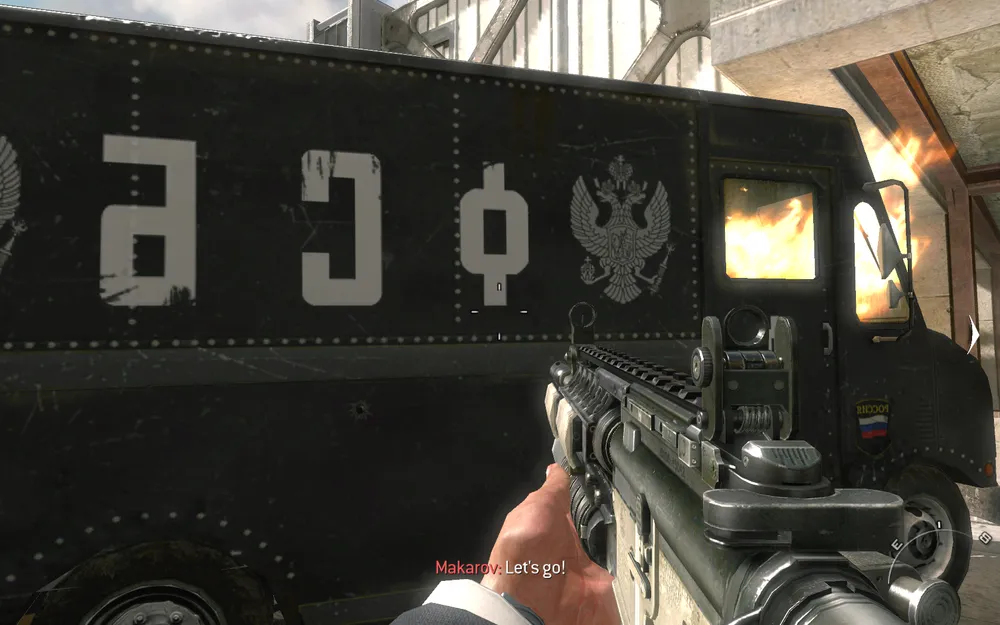 Возможно это уже видело большинство игроков CoDMW2, но для тех кто не захотел проходить Миссию «Ни слова по-русски» предлагаю увидеть грузовик ФСБ.