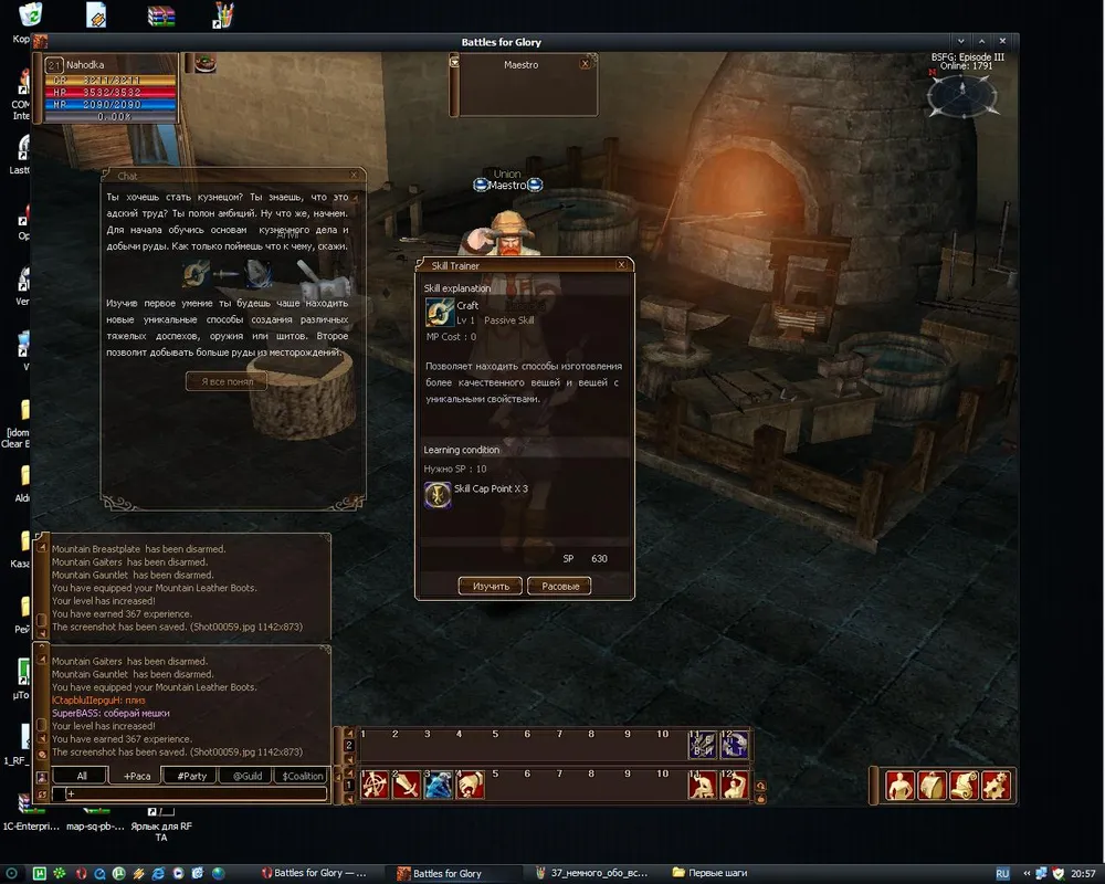 Придя к Ремесленнику в первый раз вы изучите умения, необходимые для сбора руды - скил Craft является проходным для всей ветки Кузнечного дела и Добычи Ископаемых.