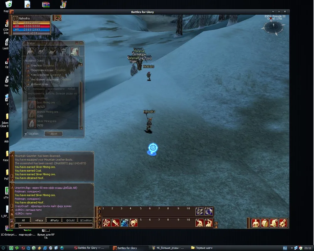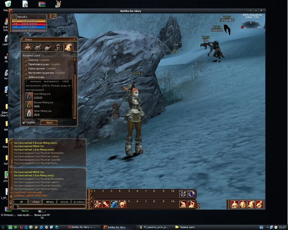 *На скрине у автора технические проблемы :) После установки клиента куда-то пропала текстура жилы в миниигре. Не критично: тыкаем в левый верхний, правый верхний и нижний левый углы темного поля - без руды не уйдете.