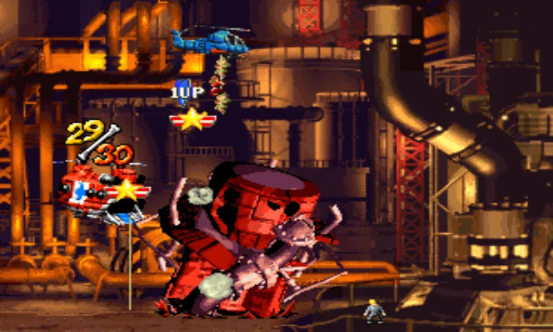 Про бонусы можно написать ещё вот что... когда вы наберёте максимальную мощность пулемёта, следущий взятый вами такой же бонус запускает таймер. Во время действия этого таймера увеличивается количество очков за убитых врагов, вплоть до х16.