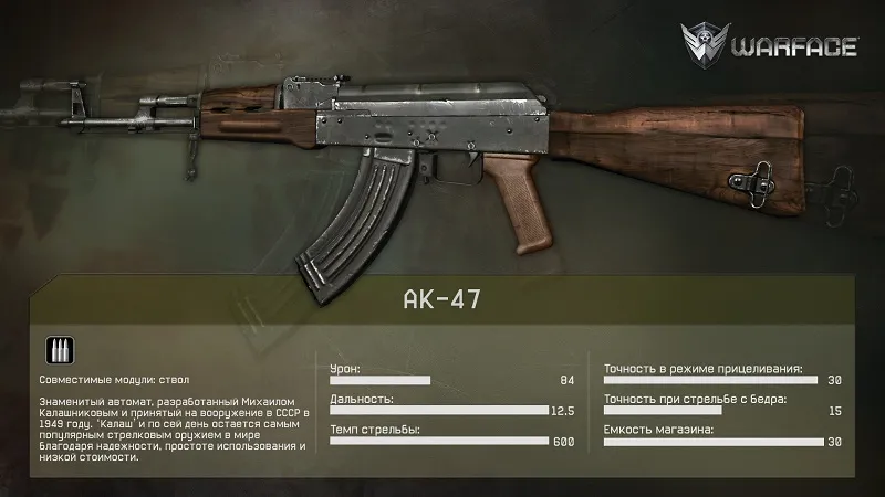 "Коробка Удачи" для штурмовика с легендарным АК-47 теперь доступна всем желающим! Приобрести ее можно за варбаксы в разделе "Разное" - "Наборы" в игровом магазине. Оружие, ставшее символом мощи и уверенности, появилось в Warface! Ак-47 наносит еще больше урона чем АК-103 который уже давно имеется в игре!