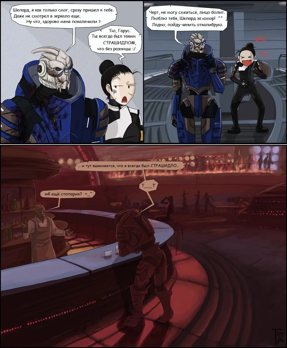 Доброго времени суток, уважаемые геймеровчане! Раз на этом блоге начал проходить конкурс о взаимоотношениях Шепарда и его соратников, то я решила собрать немного юмористических картинок по этому поводу. Помимо этого есть некоторые комиксы по игре в целом.Сразу предупреждаю, что это не конкурсная работа!Сколько замечательных мгновений, происходящих в игре вспомните вы, просмотрев комиксы и юмористические картинки. И так, приступим:
