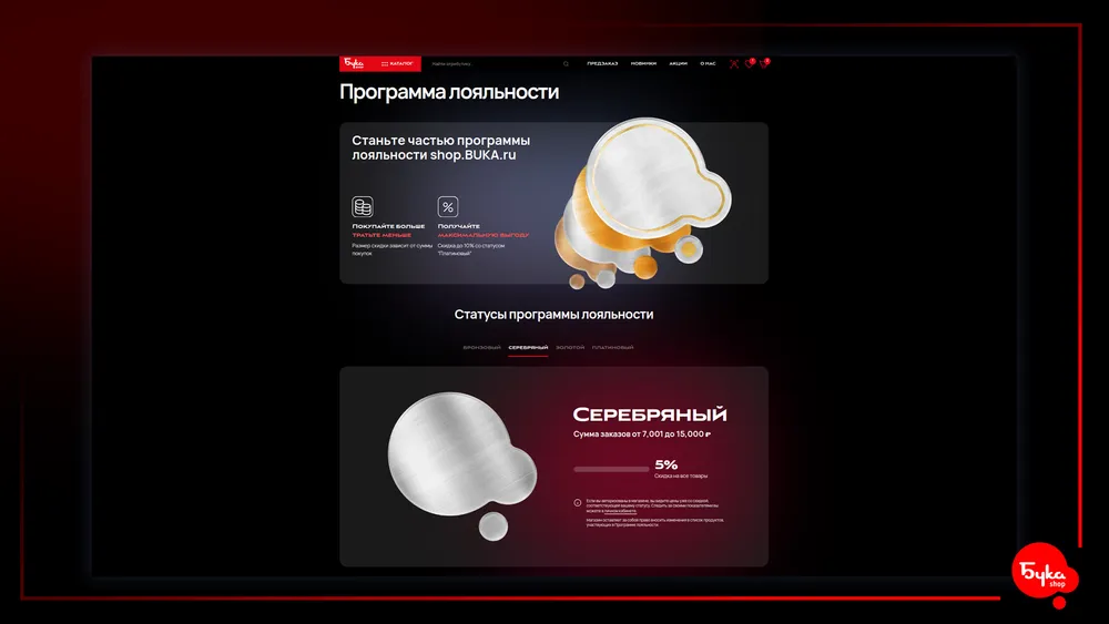 Полюбившаяся нашим покупателям программа лояльности shop.buka.ru продолжает действовать, и все ранее полученные статусы сохраняются. По-прежнему можно заработать бронзовый, серебряный, золотой и платиновый статусы, однако порог для их получения был изменен. Статусы предоставляют постоянные скидки до 10%, и эти скидки суммируются с другими акциями и предложениями, что делает покупку еще более выгодной! Узнать подробнее о программе лояльности можно на сайте по этой ссылке.