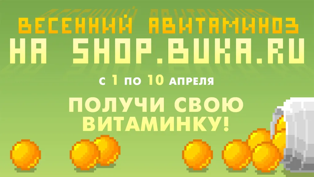 Компания Бука объявляет о старте уже ставшей традиционной акции «Весенний Авитаминоз» в цифровом магазине shop.buka.ru. Уже сейчас вы можете получить витаминки и зарядиться энергией!